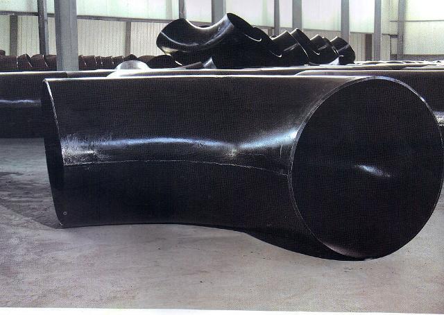 用中板用壓力機(jī)做成彎頭剖面的一半,然后把兩個(gè)剖面焊接到一起。這樣的工藝一般用來(lái)作DN700以上的彎頭的。